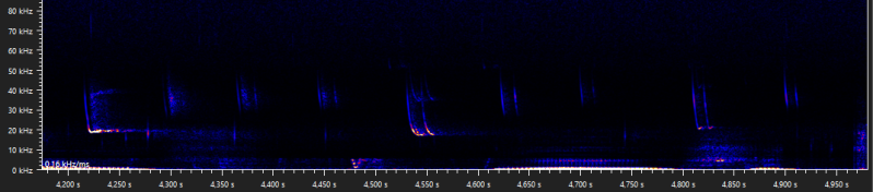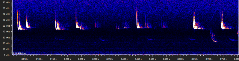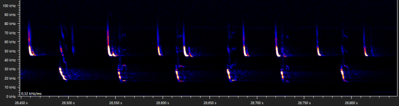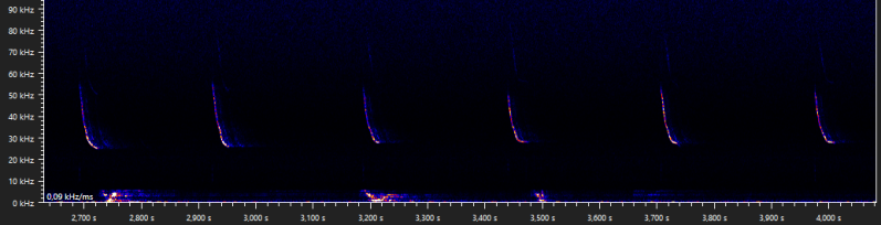 The same night as the previous recording, another weird type D social call was recorded. I have never seen a common pipistrelle call like this before.