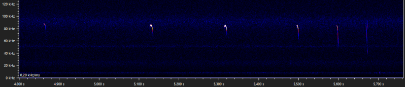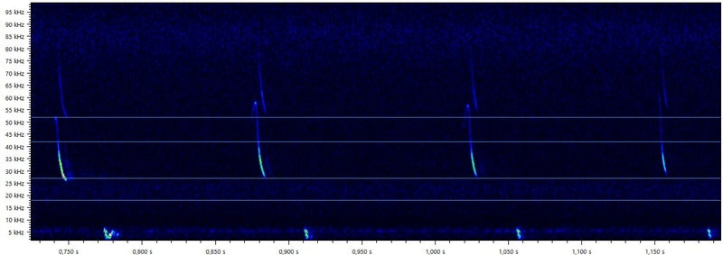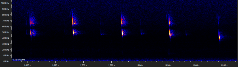 Peak frequency often around 45 to 50 kHz - FM calls - very high start frequency possible and low end frequency - quiet clicks - can only be heard within 5 - 7 meters