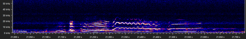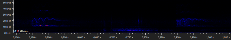 Other animals, like birds, have calls that may resemble type A or type D social calls of bats aswell. For example the calls of the common blackbird (Turdus merula), a species that is regularly encountered during bat surveys. Note that all these call are very low frequencies: almost all is below 20 kHz.