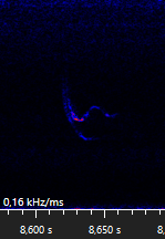 The type B social calls in the snippits below (from another recording) are a good indicator of a roost. Even when faint. This recording was made near a known maternity roost.