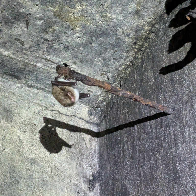 A few Daubenton's bats have already gathered in their hibernation area (two underground bunkers located in a military base) and were currently roosting at this location. We were conducting a count. A few individual bats were disturbed by the use of a flashlight and they started to emit type C social calls.